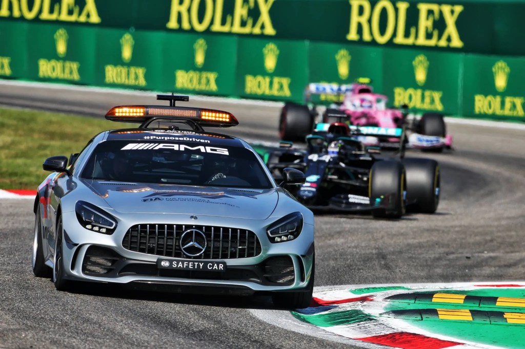 Another aspect of an F1 race is the safety car. The safety car is put on the track when there has been a damaging collision to slow down the other drivers while the marshalls clear the track.