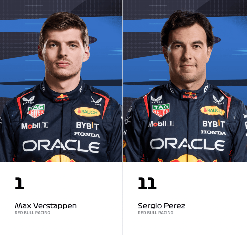 Starting with Red Bull Racing Honda RBPT. The team principal is Christian Horner with their two drivers Max Verstappen and Sergio ‘Checo’ Perez. This team uses a Honda RBPT power unit.