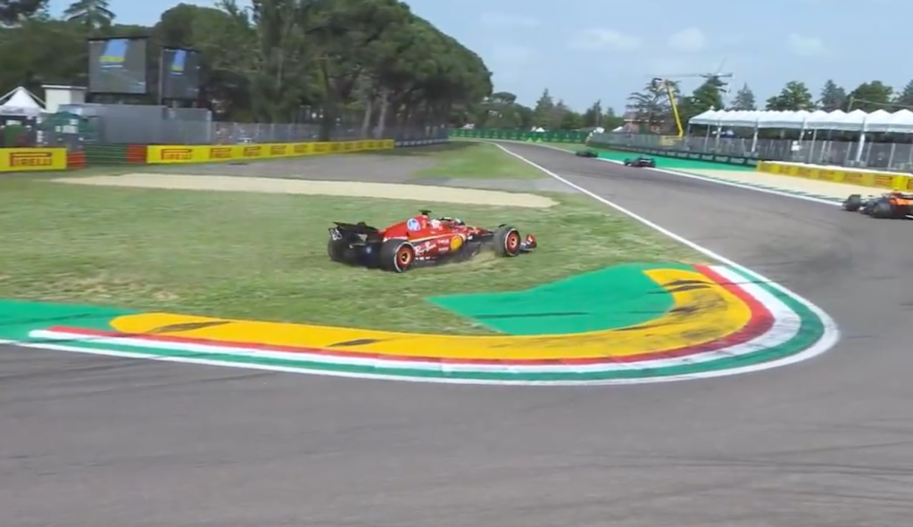Leclerc cuts through the chicane at turns 14 and 15, giving him no advantage even though it was unintentional.